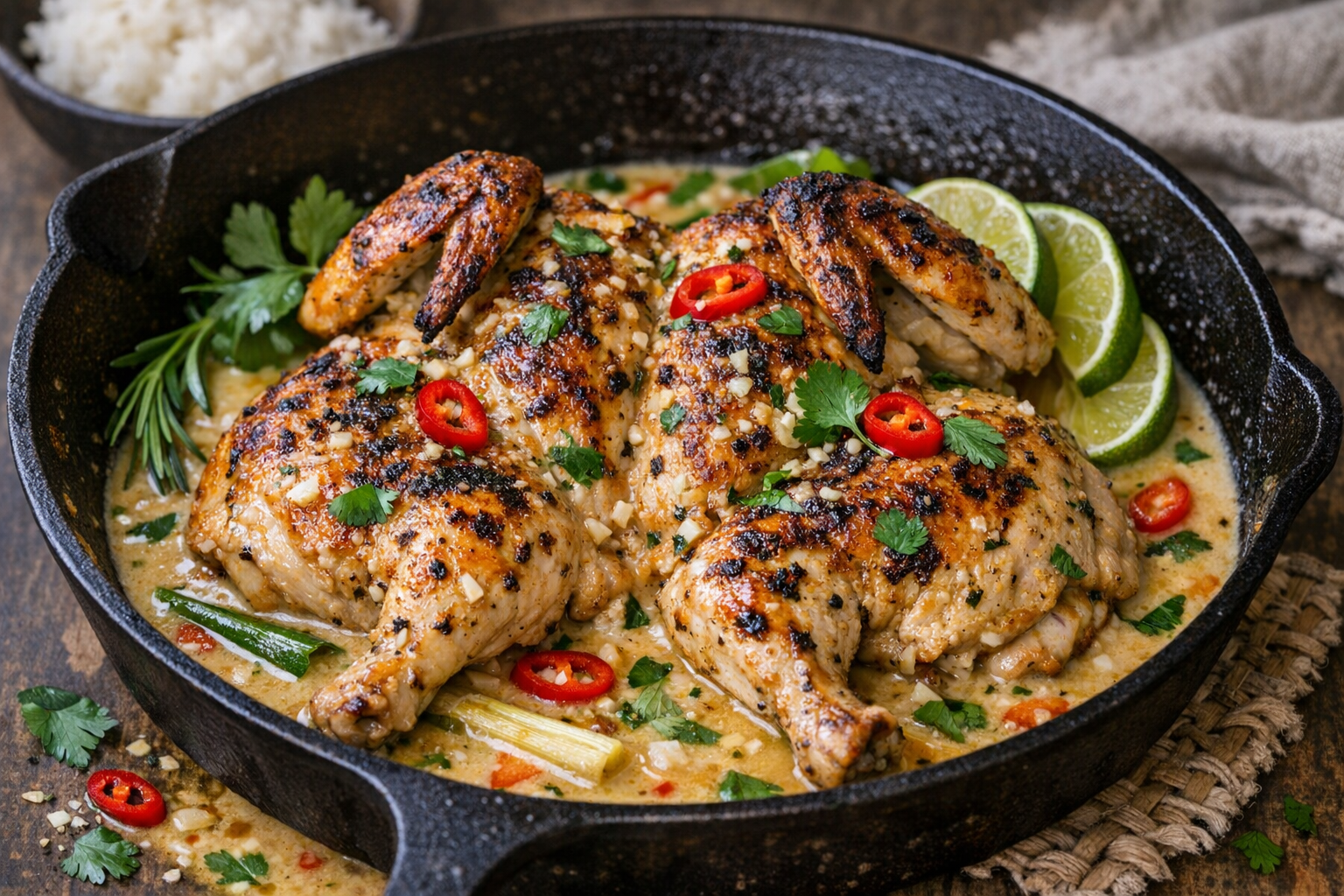 Fresh, juicy and flavoursome. This is finger licking delicious – Thai inspired coconut chicken — ! The best way to cook this little hit of heaven? Throw it straight on the barbecue where the smoky flames are licking at it and turning its skin beautifully charred. And if you fancy cooking indoors, pop it into an oven for a spectacular roast that oozes flavour. So what are you waiting for? This fresh free-range size 14 chicken is split and ready for cooking. Country of Origin, New Zealand.